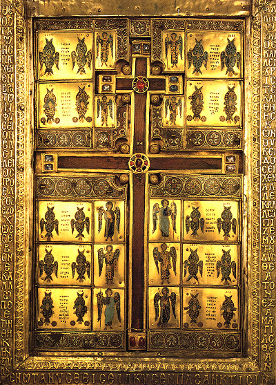 pelo bispo de Jerusalém, à esquerda (de quem olha) estão duas figuras coroadas,